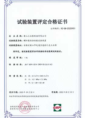 螺桿泵綜合性能實(shí)驗(yàn)裝置評(píng)定證書(1級(jí))